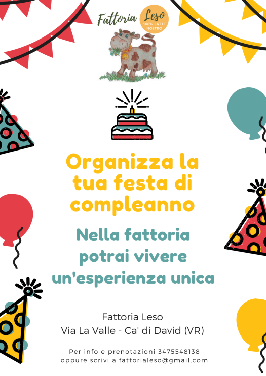 Posted on 25/10/2019 di AdminOrganizza la tua festa di compleanno Alla Fattoria Leso potrai vivere un’esperienza unica. Per info telefona al 3475548138 o scrivi a fattorialeso@gmail.com. Condividi: Fai clic per condividere su Facebook (Si apre in una nuova finestra) Facebook Fai clic per condividere su WhatsApp (Si apre in una nuova finestra) WhatsApp Fai clic qui per condividere su LinkedIn (Si apre in una nuova finestra) LinkedIn Fai clic per condividere su Telegram (Si apre in una nuova finestra) Telegram Mi piace Caricamento...