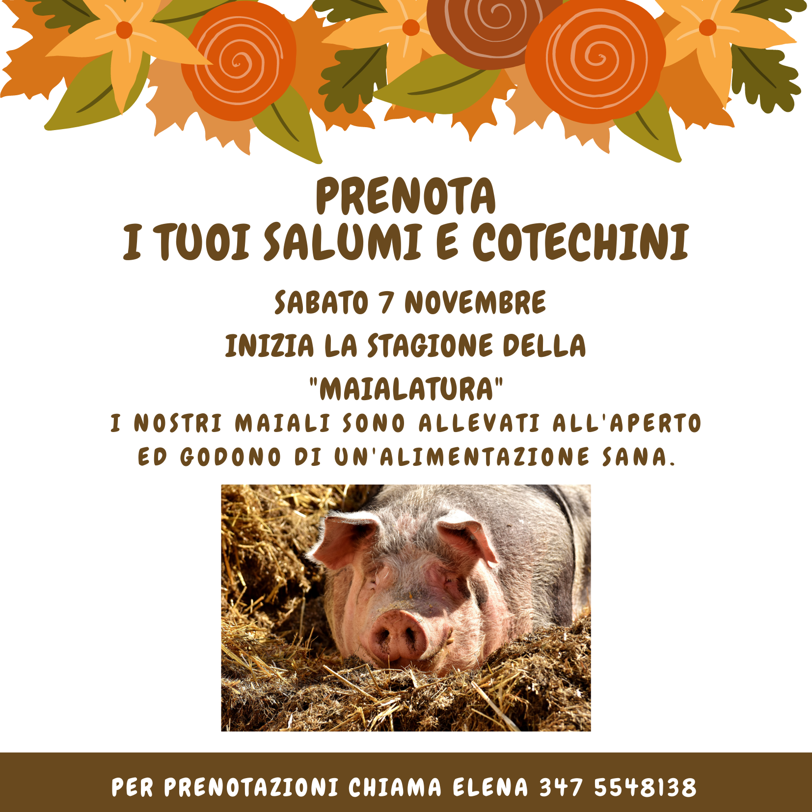 Posted on 30/10/202030/10/2020 di AdminPrenota i tuoi salumi e cotechini Sabato 7 novembre inizia la stagione della “Maialatura“.Per prenotazioni chiama Elena al 3475548138. Condividi: Fai clic per condividere su Facebook (Si apre in una nuova finestra) Facebook Fai clic per condividere su WhatsApp (Si apre in una nuova finestra) WhatsApp Fai clic qui per condividere su LinkedIn (Si apre in una nuova finestra) LinkedIn Fai clic per condividere su Telegram (Si apre in una nuova finestra) Telegram Mi piace Caricamento...