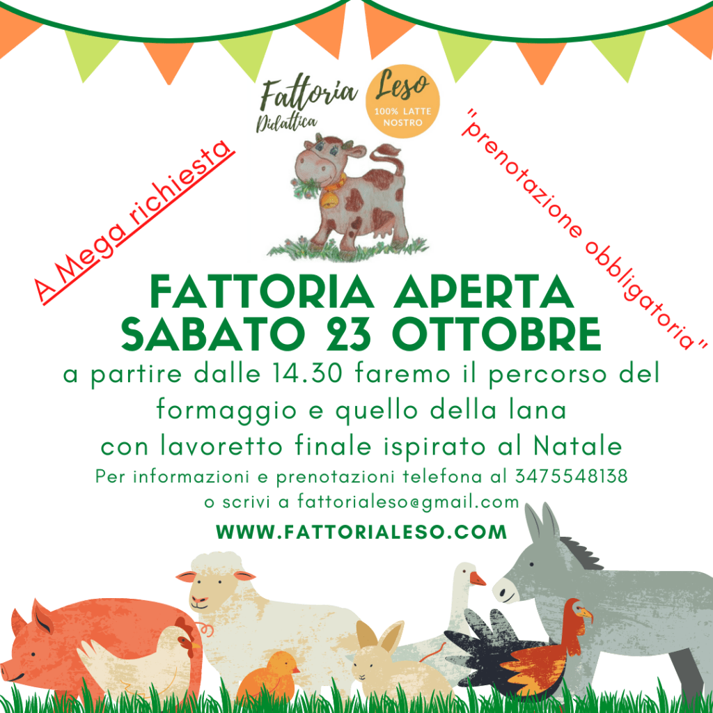 Sabato 23 ottobre a partire dalle 14.30 faremo il percorso del formaggio e quello della lana con lavoretto finale ispirato al Natale.
