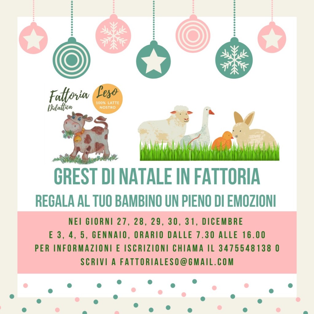 Posted on 08/12/2021 di AdminGrest di Natale in fattoria 2021 Regala al tuo bambino un pieno di emozioni. Nei giorni 27, 28, 29, 30, 31, dicembre e 3, 4, 5, Gennaio, orario dalle 7.30 alle 16.00.Per informazioni e iscrizioni chiama il 3475548138 o scrivi a fattorialeso@gmail.com Condividi: Fai clic per condividere su Facebook (Si apre in una nuova finestra) Facebook Fai clic per condividere su WhatsApp (Si apre in una nuova finestra) WhatsApp Fai clic qui per condividere su LinkedIn (Si apre in una nuova finestra) LinkedIn Fai clic per condividere su Telegram (Si apre in una nuova finestra) Telegram Mi piace Caricamento...