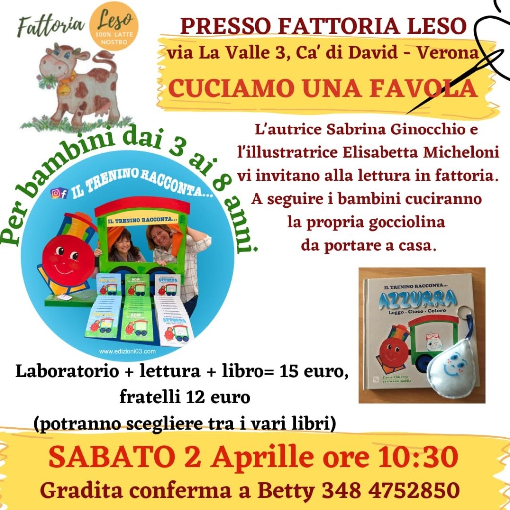 Posted on 25/03/202225/03/2022 di AdminCUCIAMO UNA FAVOLA Sabato 2 aprile ore 10.30L’autrice Sabrina Ginocchio e l’illustratrice Elisabetta Micheloni, vi invitano alla lettura in #fattorialeso. A seguire i bambini cuciranno la propria gocciolina da portare a casa. Gradita conferma a Betty 3484752850. Condividi: Fai clic per condividere su Facebook (Si apre in una nuova finestra) Facebook Fai clic per condividere su WhatsApp (Si apre in una nuova finestra) WhatsApp Fai clic qui per condividere su LinkedIn (Si apre in una nuova finestra) LinkedIn Fai clic per condividere su Telegram (Si apre in una nuova finestra) Telegram Mi piace Caricamento...