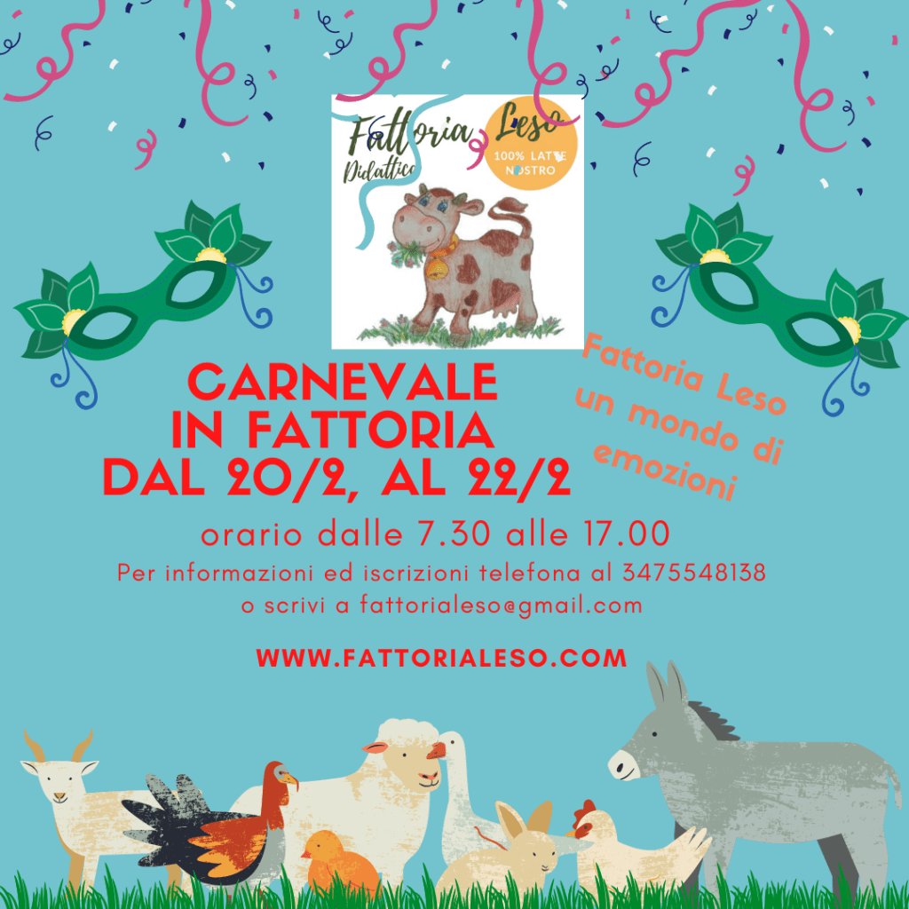 Posted on 27/01/2023 di AdminCarnevale in Fattoria Carnevale in Fattoria dal 20/2, al 22/2.Orario dalle 7:30 alle 17:00.Per informazioni e iscrizioni chiama il 3475548138 o scrivi a fattorialeso@gmail.com Condividi: Fai clic per condividere su Facebook (Si apre in una nuova finestra) Facebook Fai clic per condividere su WhatsApp (Si apre in una nuova finestra) WhatsApp Fai clic qui per condividere su LinkedIn (Si apre in una nuova finestra) LinkedIn Fai clic per condividere su Telegram (Si apre in una nuova finestra) Telegram Mi piace Caricamento...