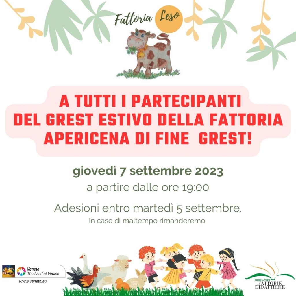 Posted on 29/08/2023 di AdminFesta di fine grest 2023 A tutti i partecipanti del Grest Estivo della fattoria apericena di fine grest!Giovedì 7 settembre ore 19:00.Adesioni entro martedì 5 settembre. Vi aspettiamo! In caso di maltempo rimanderemo. Condividi: Fai clic per condividere su Facebook (Si apre in una nuova finestra) Facebook Fai clic per condividere su WhatsApp (Si apre in una nuova finestra) WhatsApp Fai clic qui per condividere su LinkedIn (Si apre in una nuova finestra) LinkedIn Fai clic per condividere su Telegram (Si apre in una nuova finestra) Telegram Mi piace Caricamento...