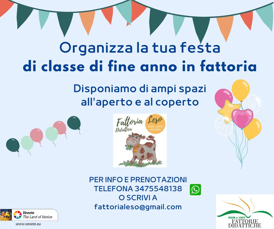 Posted on 01/02/2024 di AdminOrganizza la tua festa Organizza la tua festa di classe di fine anno in fattoria!Disponiamo di ampi spazi all’aperto e al coperto. Per info e prenotazioni telefona a 3475548138 o scrivi a fattorialeso@gmail.com xr:d:DAFK5z9vOL0:19,j:3492958813949061892,t:24020108 Condividi: Fai clic per condividere su Facebook (Si apre in una nuova finestra) Facebook Fai clic per condividere su WhatsApp (Si apre in una nuova finestra) WhatsApp Fai clic qui per condividere su LinkedIn (Si apre in una nuova finestra) LinkedIn Fai clic per condividere su Telegram (Si apre in una nuova finestra) Telegram Mi piace Caricamento...