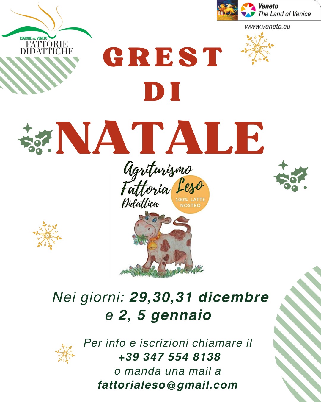 Posted on 02/12/2025 di AdminGrest di Natale Nei giorni 29, 30 e 31 dicembre e 2 e 5 gennaioPer info ed iscrizioni chiamare il 3475548138o manda una mail a fattorialeso@gmail.com Condividi: Fai clic per condividere su Facebook (Si apre in una nuova finestra) Facebook Fai clic per condividere su WhatsApp (Si apre in una nuova finestra) WhatsApp Fai clic qui per condividere su LinkedIn (Si apre in una nuova finestra) LinkedIn Fai clic per condividere su Telegram (Si apre in una nuova finestra) Telegram Mi piace Caricamento...