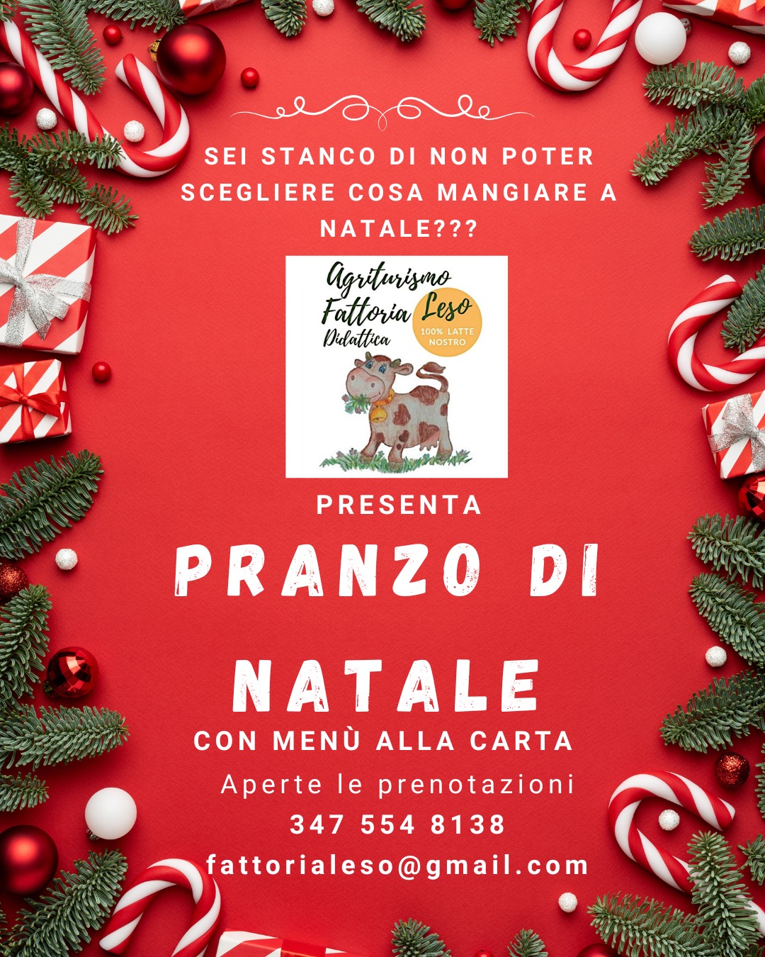 Posted on 03/12/2025 di AdminPranzo di Natale Sei stanco di non poter scegliere cosa mangiare a Natale? Pranzo di Natale con menù alla carta, aperte le prenotazioni.Telefona al 3475548138 o scrivi a fattorialeso@gmail.com Condividi: Fai clic per condividere su Facebook (Si apre in una nuova finestra) Facebook Fai clic per condividere su WhatsApp (Si apre in una nuova finestra) WhatsApp Fai clic qui per condividere su LinkedIn (Si apre in una nuova finestra) LinkedIn Fai clic per condividere su Telegram (Si apre in una nuova finestra) Telegram Mi piace Caricamento...