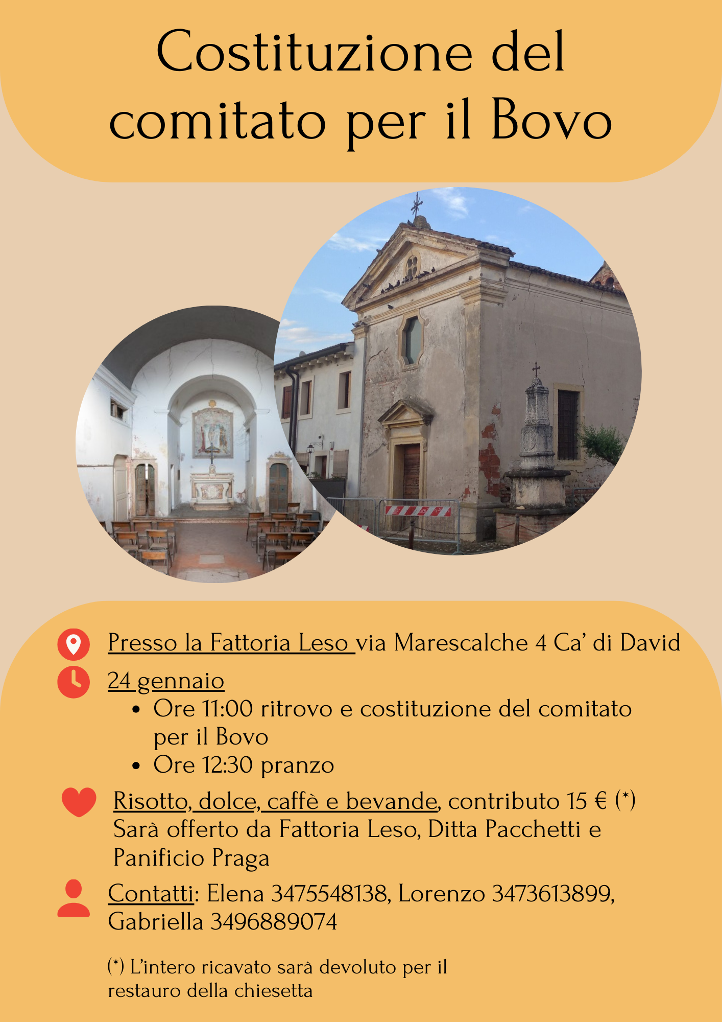 (*) L’intero ricavato sarà devoluto per il restauro della chiesetta del Bovo.