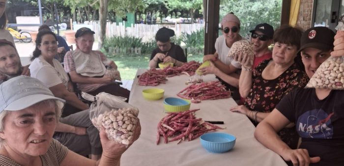 Oggi con gli amici del centro diurno Il Tiglio "sgrànemo i fasòi"